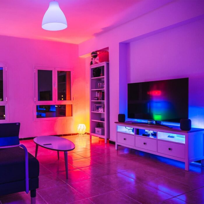 “COB” steht für “Chip on board”. Beim COB Streifen sind die einzelnen LEDs nicht mehr pro separatem Gehäuse verbaut, sondern sind unter einer Phosphorschicht auf dem Band untergebracht. Die Phosphorschicht wird benötigt, um weißes Licht zu erzeugen.