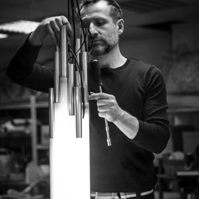 - Künstlerische Brillanz von Sebastian Summa: Die Org Pendelleuchte ist das Resultat der künstlerischen Raffinesse von Sebastian Summa, einem renommierten Metallkünstler mit Atelier in Ostberlin. Seine Expertise spiegelt sich in einem einzigartigen Stück wider, das Kunst und Funktionalität auf beeindruckende Weise verbindet.