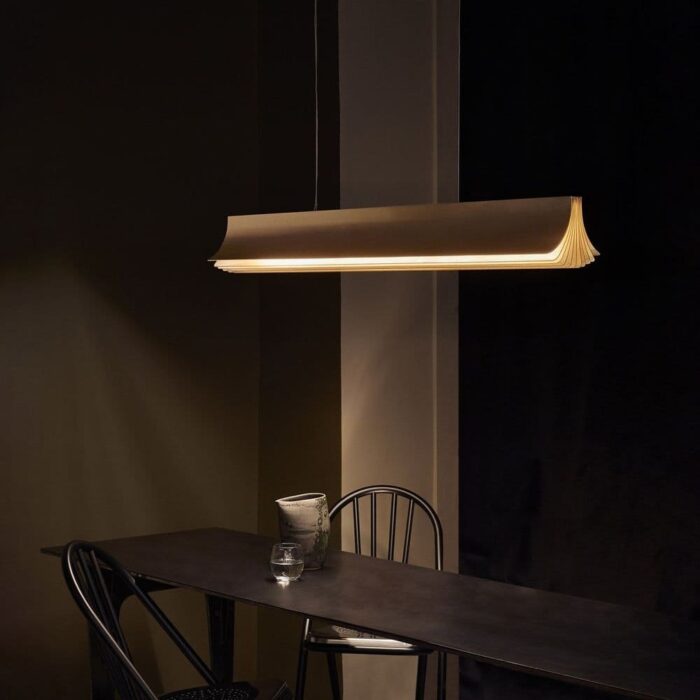 Die DCWéditions Respiro LED Pendelleuchte in 120 cm ist eine dekorative und faszinierende Hängelampe mit einem schlichten Design. Wie ein offenes Buch verleiht diese Leuchte dem Raum Eleganz und Leichtigkeit. Der Designer Philippe Nigro zeigt in seinem Entwurf ein tiefes Verständnis für die Architektur und Szenografie eines Raumes.