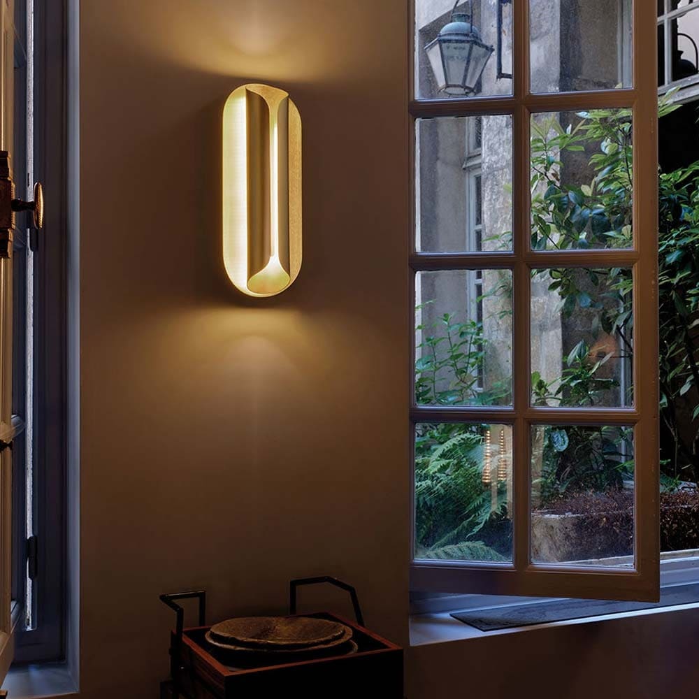 Die Wandleuchte Rosalie LED von DCWéditions, entworfen von der französischen Designerin Julie Fuillet, verkörpert höchste Eleganz. Hergestellt aus eloxiertem Aluminium, besticht diese Lampe durch eine wunderschöne goldene Oberfläche. Das dünne, gebogene Metallblech bildet eine zarte Hülle für das Licht, wodurch eine Ästhetik entsteht, die sowohl schlicht als auch anspruchsvoll ist.