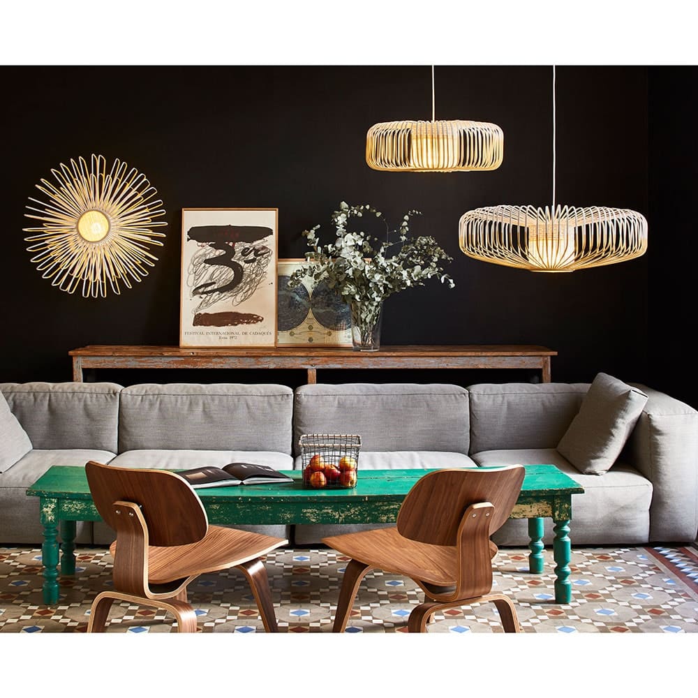 Die vom Designer Arik Levy entworfene Lampenkollektion „Bamboo“ verbindet natürliche Materialien und modernes Design scheinbar mühelos in einem trendigen, puristischen Zen-Look. Die „Bamboo“-Lampen zeichnen sich durch ihren zweifarbigen Lampenschirm aus Bambusstäben aus, der zarte Schatten an die Wände wirft. Und auch der Diffusor besteht aus Bambus: Der obere Teil ist aus naturfarbenem Bambus gewebt, der untere aus gefärbtem Bambus geflochten. Auf diese Weise entsteht ein gedämpftes, warmes und weiches Licht.