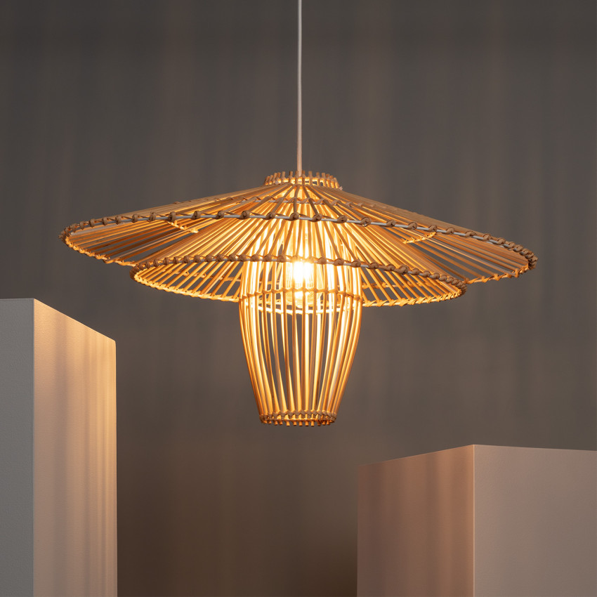 Wir lassen uns von der Schlichtheit und Eleganz dieser Pendelleuchte verführen. Mit ihrem Bambusschirm präsentiert sich diese handgefertigte Hängelampe im Ethno-Stil. Perfekt um der Dekoration eine exotische und natürliche Note zu verleihen, lässt sie sich problemlos mit der Tischleuchte aus der gleichen Serie kombinieren.