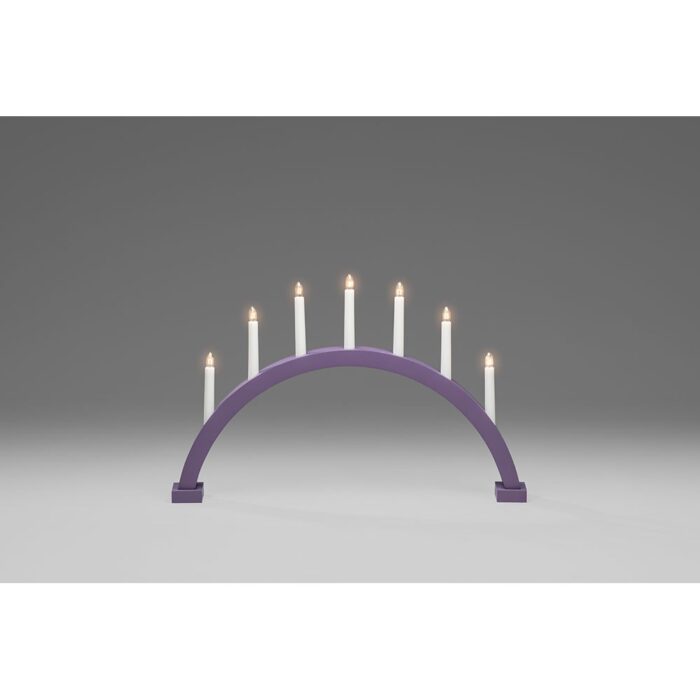 Holzleuchter, blau/purpurfarben lackiert , 7 klare Birnen, 230V Innen, weißes Kabel