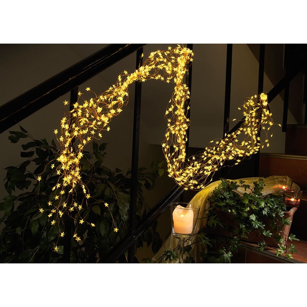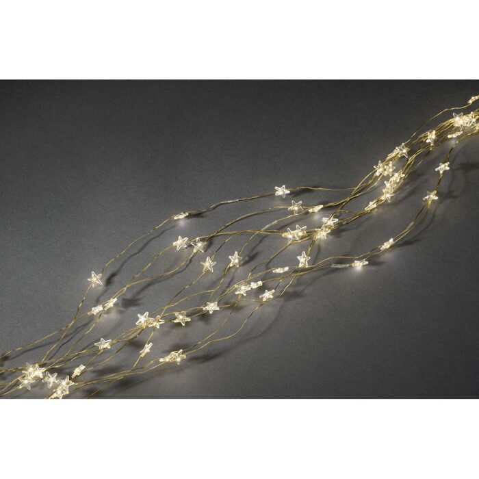 LED Sternenlametta, 10 Stränge à 9 Dioden, 90 warm weiße Dioden, 12V Innentrafo, goldfarbener Draht