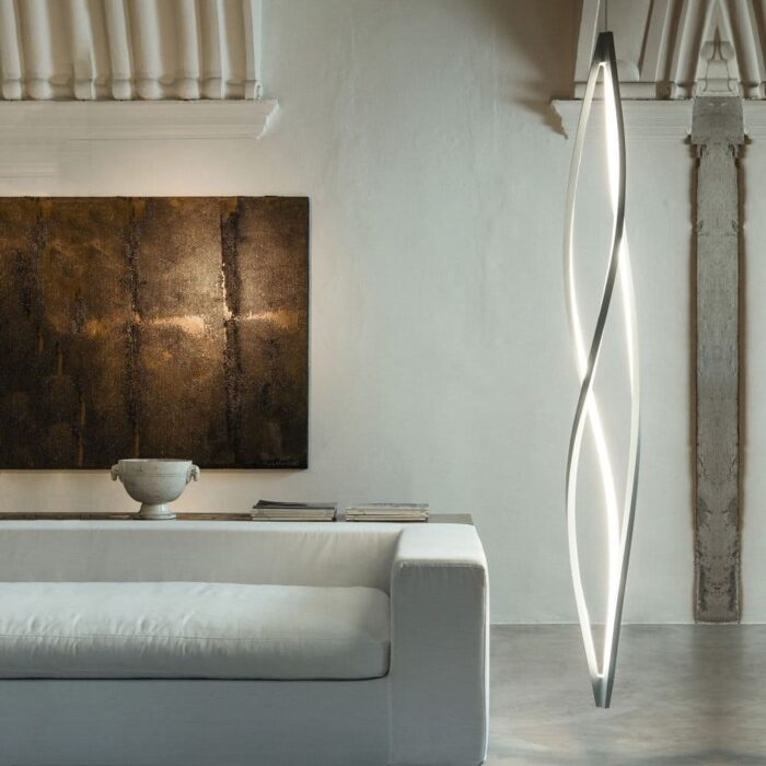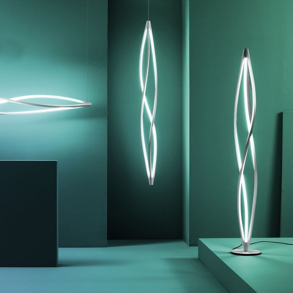 Arihiro Miyake, ein junger japanischer Designer, entwarf die In The Wind Horizontal Pendelleuchte für den italienischen Traditionshersteller Nemohting. Lig Gefertigt aus gedrehten Aluminiumprofilen überzeugen sie durch ihr fließendes, außergewöhnliches Design. Das Licht der LEDs wird durch opalweiße Kunststoffdiffusoren weich gebrochen und es wird eine allseitige Lichtausstrahlung erzielt.